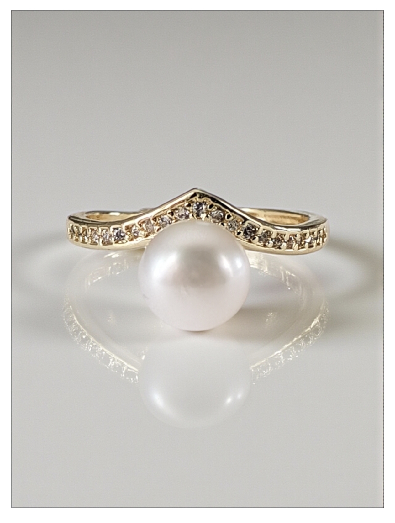 Precioso anillo hecho con perla de agua dulce y metal antialérgico bañado en oro.