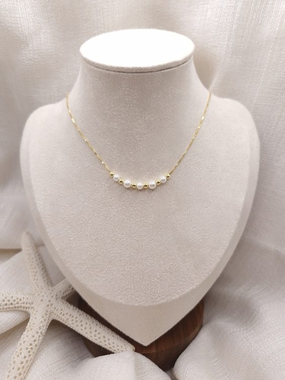 • Cadena de plata bañada en oro con perlas de Mallorca de 3 y 4 mm en color blanco