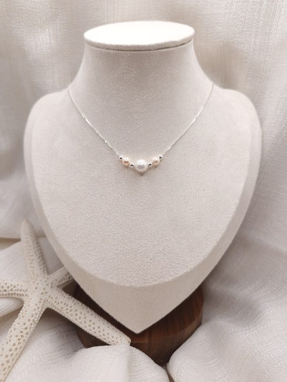 • Cadena de plata con perlas de Mallorca de 6 y 4 mm