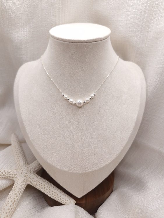 • Cadena de plata con perlas de Mallorca de 6 y 4 mm