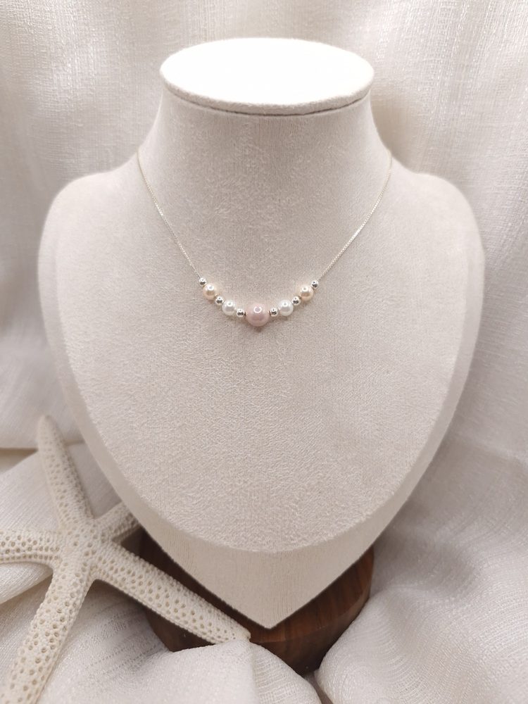 • Cadena de plata con perlas de Mallorca de 6 y 4 mm
