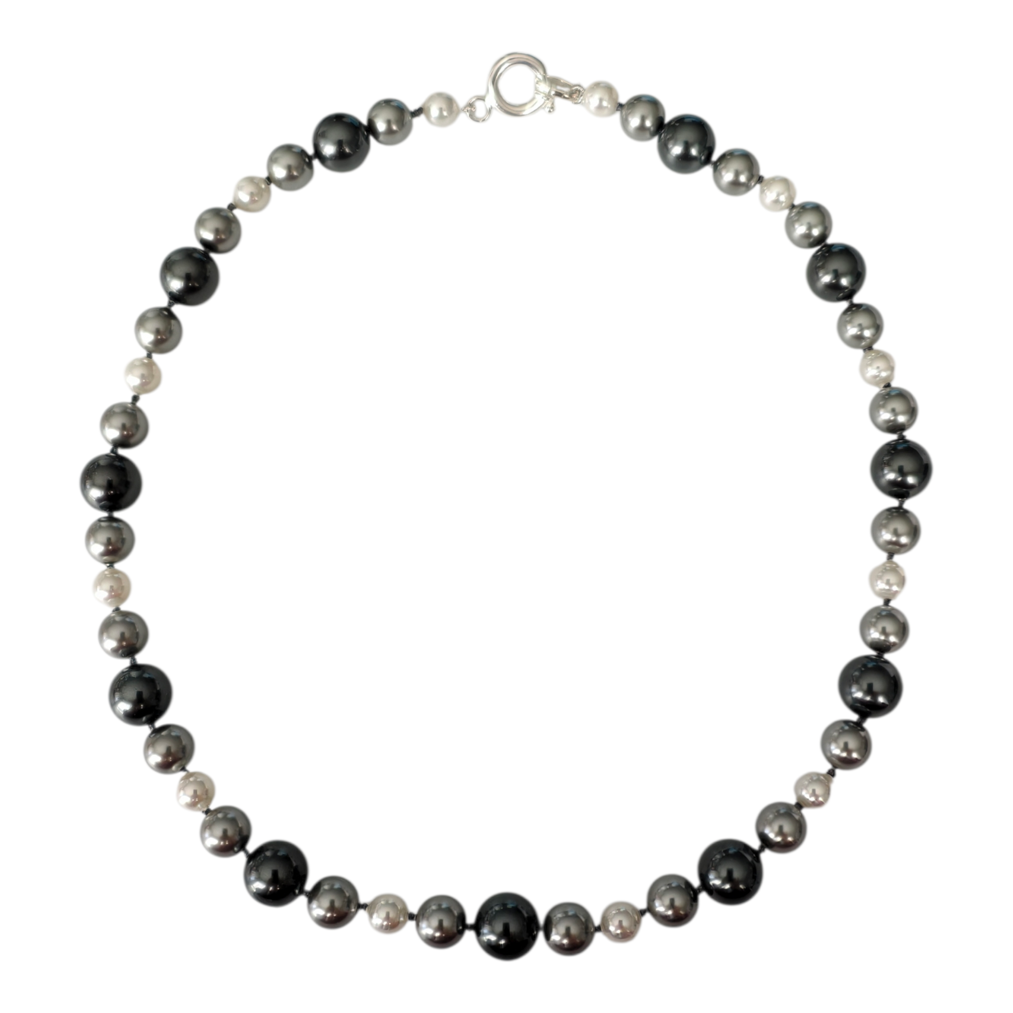 Elegante collar hecho con perlas de Mallorca de primera calidad y cierre de plata de Ley 925 bañado en oro 18 Kt. El collar lleva las perlas mallorquinas: