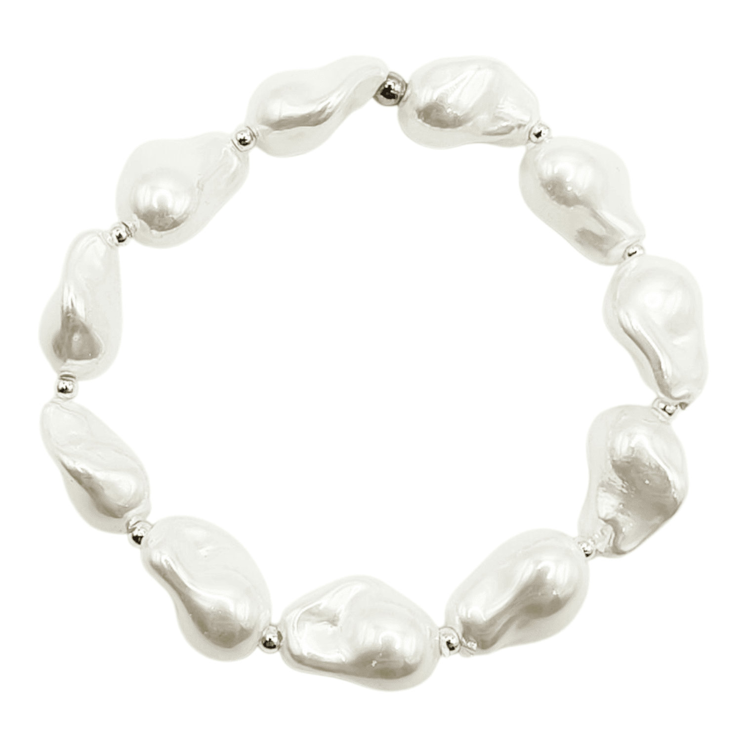 La pulsera hecha con perlas de Mallorca de forma barroca en color blanco y bolitas de hematita de 4 mm.