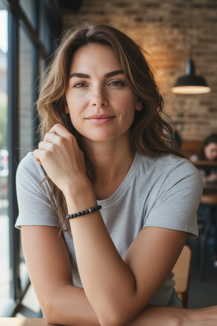 Pulsera elástica de cuentas naturales